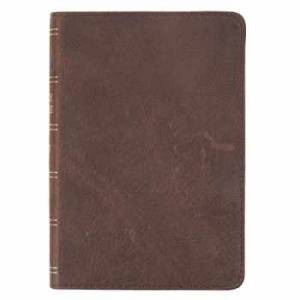 This Dark Brown Premium Leather Large Print Compact King James Version Bible is small enough to carry with you through the day yet printed in a font s... Learn More